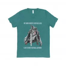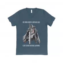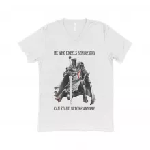 Use our battle tested marketing materials for He Who Kneels Before God Unisex Triblend V-Neck T-Shirt