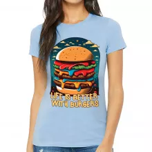 Use our battle tested marketing materials for Burger Print Slim Fit T-Shirt - Quote Women's T-Shirt - Illustration Slim Fit Tee