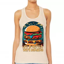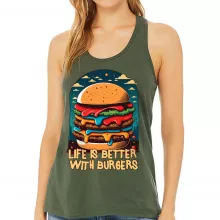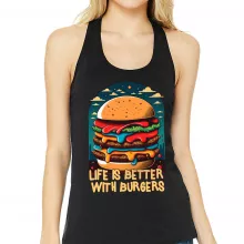 Use our battle tested marketing materials for Burger Print Women's Racerback Tank - Quote Tank Top - Illustration Workout Tank