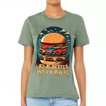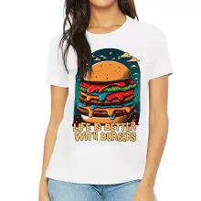 Use our battle tested marketing materials for Burger Print Women's T-Shirt - Quote T-Shirt - Illustration Relaxed Tee