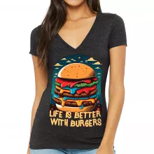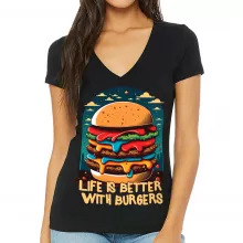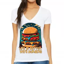 Use our battle tested marketing materials for Burger Print Women's V-Neck T-Shirt - Quote V-Neck Tee - Illustration T-Shirt