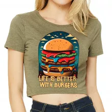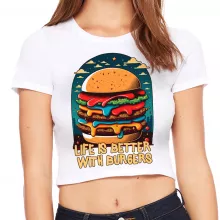 Use our battle tested marketing materials for Burger Print Women's Cropped T-Shirt - Quote Crop Top - Illustration Cropped Tee
