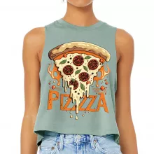 Use our battle tested marketing materials for Pizza Graphic Racerback Cropped Tank - Trendy Women's Tank - Themed Tank Top