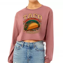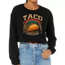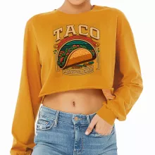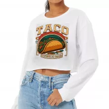 Use our battle tested marketing materials for Taco Print Cropped Long Sleeve T-Shirt - Food Women's T-Shirt - Cool Graphic Long Sleeve Tee