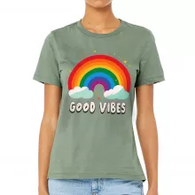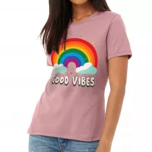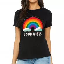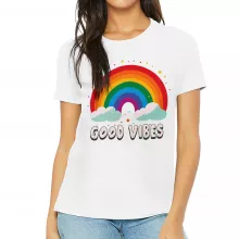 Use our battle tested marketing materials for Good Vibes Women's T-Shirt - Rainbow T-Shirt - Colorful Relaxed Tee