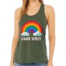 Use our battle tested marketing materials for Good Vibes Women's Racerback Tank - Rainbow Tank Top - Colorful Workout Tank