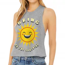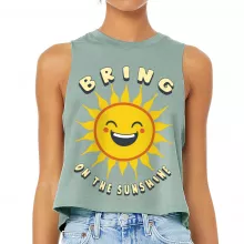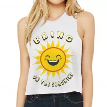 Use our battle tested marketing materials for Bring on the Sunshine Racerback Cropped Tank - Sun Design Women's Tank - Printed Tank Top