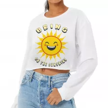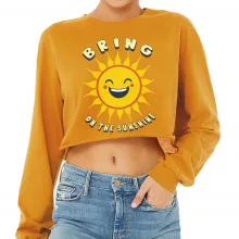 Use our battle tested marketing materials for Bring on the Sunshine Cropped Long Sleeve T-Shirt - Sun Design Women's T-Shirt - Printed Long Sleeve Tee