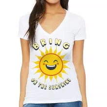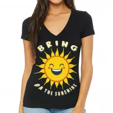 Use our battle tested marketing materials for Bring on the Sunshine Women's V-Neck T-Shirt - Sun Design V-Neck Tee - Printed T-Shirt
