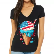 Use our battle tested marketing materials for Ice Cream Flag Women's V-Neck T-Shirt - Patriotic V-Neck Tee - Cool Design T-Shirt