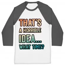 Use our battle tested marketing materials for That's a Horrible Idea What Time Baseball T-Shirt - Printed T-Shirt - Funny Quote Baseball Tee