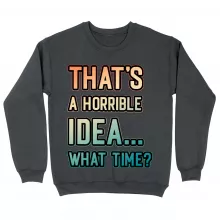 Use our battle tested marketing materials for That's a Horrible Idea What Time Sweatshirt - Printed Crewneck Sweatshirt - Funny Quote Sweatshirt