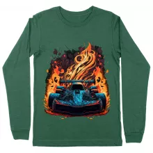 Race Car Long Sleeve T-Shirt - Fire Design T-Shirt - Cool Long Sleeve Tee