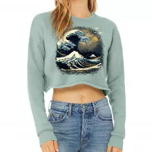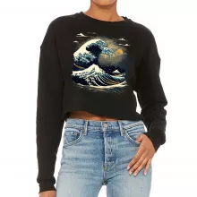 Use our battle tested marketing materials for Great Wave Cropped Sweatshirt - Printed Women's Sweatshirt - Illustration Crop Crew Sweatshirt