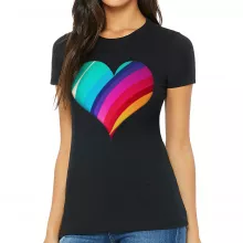 Rainbow Heart Slim Fit T-Shirt - Colorful Women's T-Shirt - Cute Slim Fit Tee