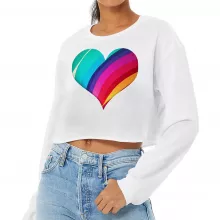 Use our battle tested marketing materials for Rainbow Heart Cropped Long Sleeve T-Shirt - Colorful Women's T-Shirt - Cute Long Sleeve Tee