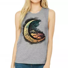 Use our battle tested marketing materials for Moon Graphic Women's Muscle Tank - Cool Art Tank Top - Printed Workout Tank