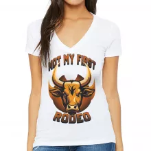 Use our battle tested marketing materials for Not My First Rodeo Women's V-Neck T-Shirt - Bull Design V-Neck Tee - Cool Graphic T-Shirt