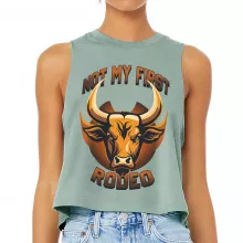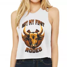 Use our battle tested marketing materials for Not My First Rodeo Racerback Cropped Tank - Bull Design Women's Tank - Cool Graphic Tank Top