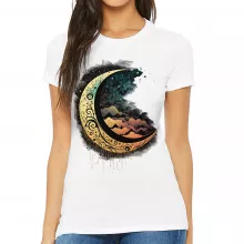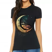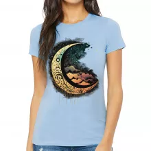Moon Graphic Slim Fit T-Shirt - Cool Art Women's T-Shirt - Printed Slim Fit Tee