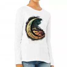 Use our battle tested marketing materials for Moon Graphic Women's Long Sleeve T-Shirt - Cool Art Long Sleeve Tee - Printed T-Shirt