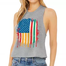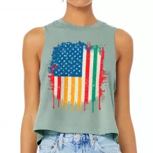 Use our battle tested marketing materials for USA Flag Racerback Cropped Tank - Creative Women's Tank - Patriotic Tank Top