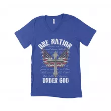 Use our battle tested marketing materials for One Nation Under God Unisex Jersey V-Neck T-Shirt