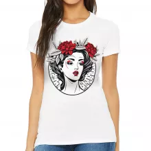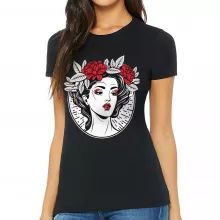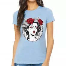 Floral Design Slim Fit T-Shirt - Cool Graphic Women's T-Shirt - Illustration Slim Fit Tee