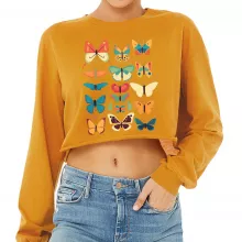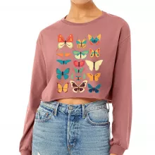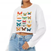 Use our battle tested marketing materials for Butterfly Print Cropped Long Sleeve T-Shirt - Cute Graphic Women's T-Shirt - Best Print Long Sleeve Tee