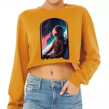 Use our battle tested marketing materials for Space Astronaut Cropped Long Sleeve T-Shirt - Galaxy Women's T-Shirt - Cool Long Sleeve Tee