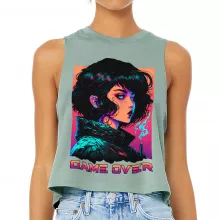 Use our battle tested marketing materials for Game Over Racerback Cropped Tank - Cool Art Women's Tank - Illustration Tank Top