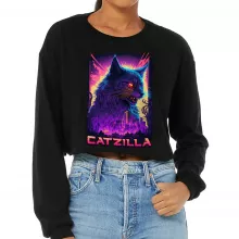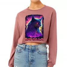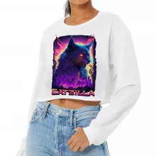 Use our battle tested marketing materials for Funny Cat Cropped Long Sleeve T-Shirt - Psychedelic Women's T-Shirt - Cool Graphic Long Sleeve Tee