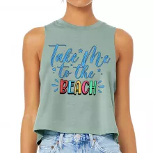 Use our battle tested marketing materials for Take Me to the Beach Racerback Cropped Tank - Cool Women's Tank - Trendy Tank Top