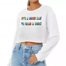 Use our battle tested marketing materials for Book Lover Cropped Long Sleeve T-Shirt - Cool Quote Women's T-Shirt - Themed Long Sleeve Tee