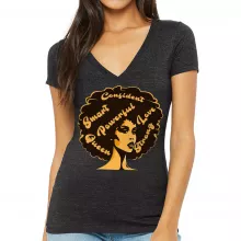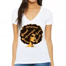 Use our battle tested marketing materials for Afro Hair Women's V-Neck T-Shirt - African American V-Neck Tee - Best Design T-Shirt