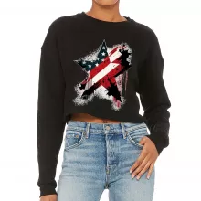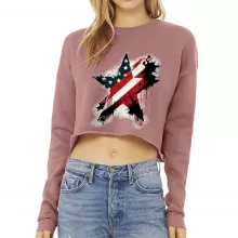 Use our battle tested marketing materials for USA Flag Cropped Sweatshirt - Star Print Women's Sweatshirt - Patriotic Crop Crew Sweatshirt