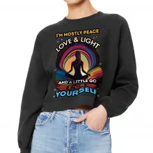 Use our battle tested marketing materials for I'm Mostly Peace Love and Light Raglan Pullover - Yoga Themed Women's Sweatshirt - Funny Pullover