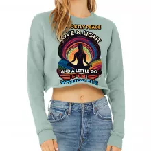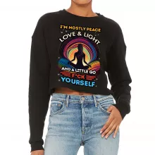 Use our battle tested marketing materials for I'm Mostly Peace Love and Light Cropped Sweatshirt - Yoga Themed Women's Sweatshirt - Funny Crop Crew Sweatshirt