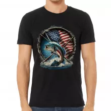 Use our battle tested marketing materials for Flag Behind Bass Fishing Short Sleeve T-Shirt - Patriotic T-Shirt - Cool Short Sleeve Tee