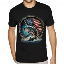 Use our battle tested marketing materials for Flag Behind Bass Fishing Sueded T-Shirt - Patriotic T-Shirt - Cool Sueded Tee