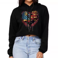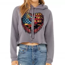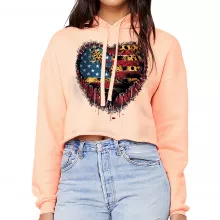 Use our battle tested marketing materials for Flag Heart Women's Cropped Hoodie - Animal Print Cropped Hoodie - Printed Hooded Sweatshirt