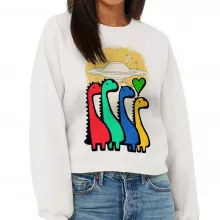 Use our battle tested marketing materials for Cute Dinosaur Raglan Pullover - Cartoon Women's Sweatshirt - UFO Pullover