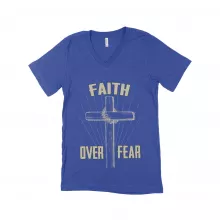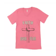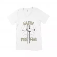 Use our battle tested marketing materials for Faith Over Fear Unisex Jersey V-Neck T-Shirt