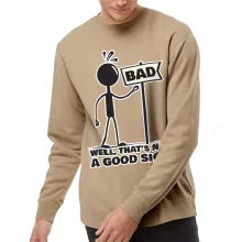 Use our battle tested marketing materials for Not a Good Sign Midweight Sweatshirt - Funny Crewneck Sweatshirt - Sarcastic Sweatshirt