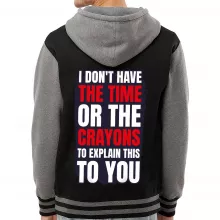 Use our battle tested marketing materials for I Don't Have the Time Or Crayons Varsity Hoodie - Printed Zip Hoodie - Funny Print Hooded Sweatshirt