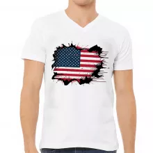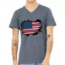 USA Flag V-Neck T-Shirt - Patriotic T-Shirt - Trendy V-Neck Tee