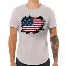Use our battle tested marketing materials for USA Flag Curved Hem T-Shirt - Patriotic T-Shirt - Trendy Curved Hem Tee