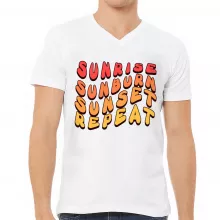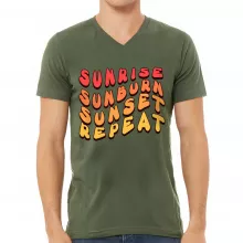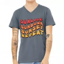 Use our battle tested marketing materials for Sunrise Sunburn Sunset Repeat V-Neck T-Shirt - Beach T-Shirt - Vacation V-Neck Tee