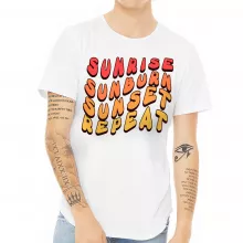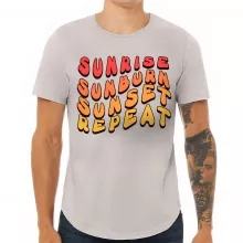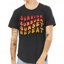 Use our battle tested marketing materials for Sunrise Sunburn Sunset Repeat Curved Hem T-Shirt - Beach T-Shirt - Vacation Curved Hem Tee