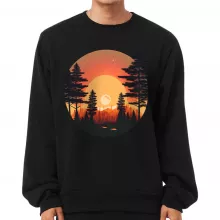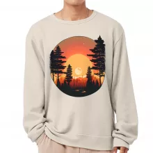 Use our battle tested marketing materials for Sunset Design Sponge Fleece Sweatshirt - Forest Print Classic Sweatshirt - Best Graphic Sweatshirt